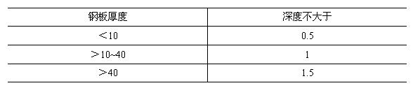 1.6 焊縫應均勻平整,不應有裂紋、夾渣、燒穿、未焊透等缺陷。重要部位的焊縫還不應有氣孔,且咬肉長度不得超過焊縫長度的15%,咬肉深度應符合表1的規(guī)定。